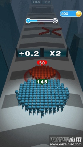 操作十分简单,手指滑动就能指挥小兵移动。运用基础的加减乘除运算,可以让你带领的队伍人数增加,从而在与其它小兵对抗时取得优势。队伍规模往往是决定胜负的重要因素。