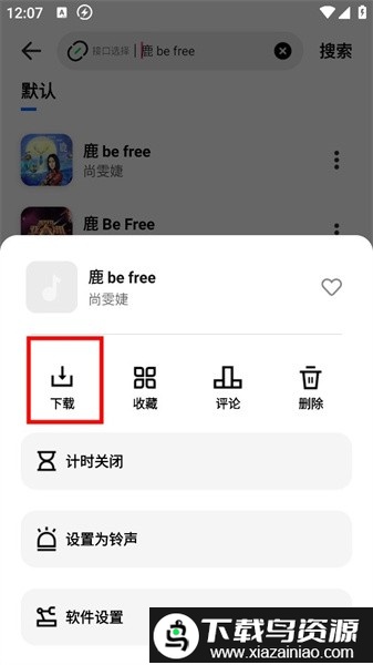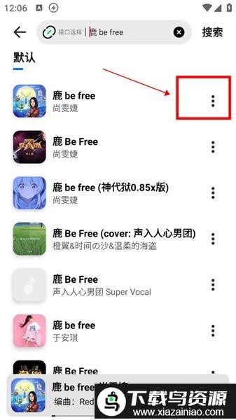 1、在搜索结果中点击歌曲右侧的三个点,菜单内会出现下载选项。