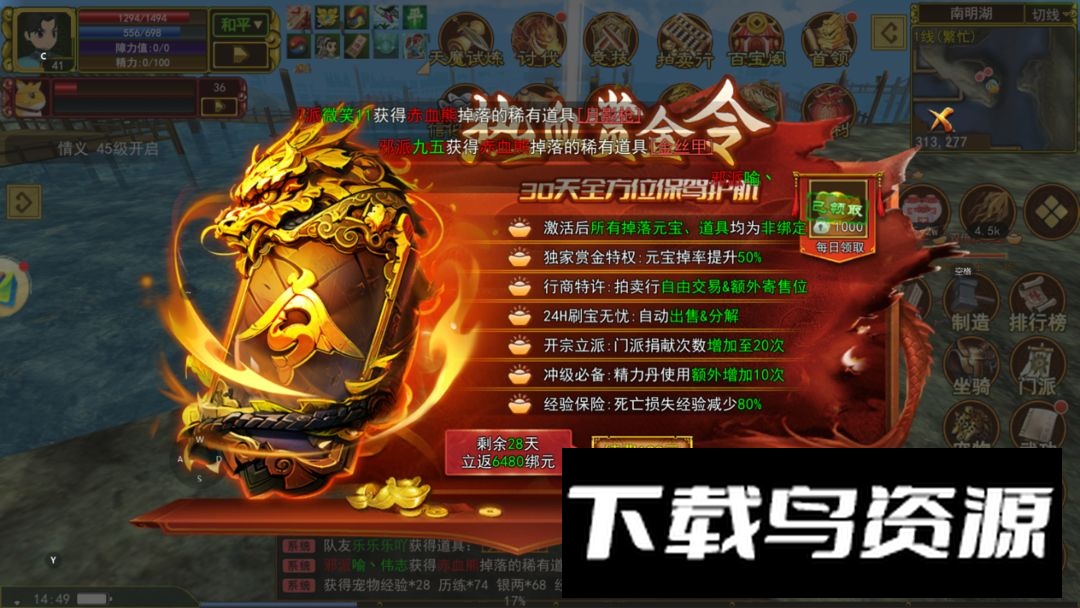 拥有赏金令和侠名能开启多项便利功能;例如野外怪物掉落元宝的概率会提升50%,直接提高刷怪收益;同时将解锁拍卖行,便于自由交易各类物品;自动出售与分解功能可以节省大量整理背包的时间;门派捐献次数增至20次,助力团队成长;每日可使用精力丹的次数额外增加10次;角色死亡损失的经验减少80%;天机楼每日可额外购买3次挑战机会;开启赏金令后,每日还能固定领取1000元宝,长期积累颇为可观。