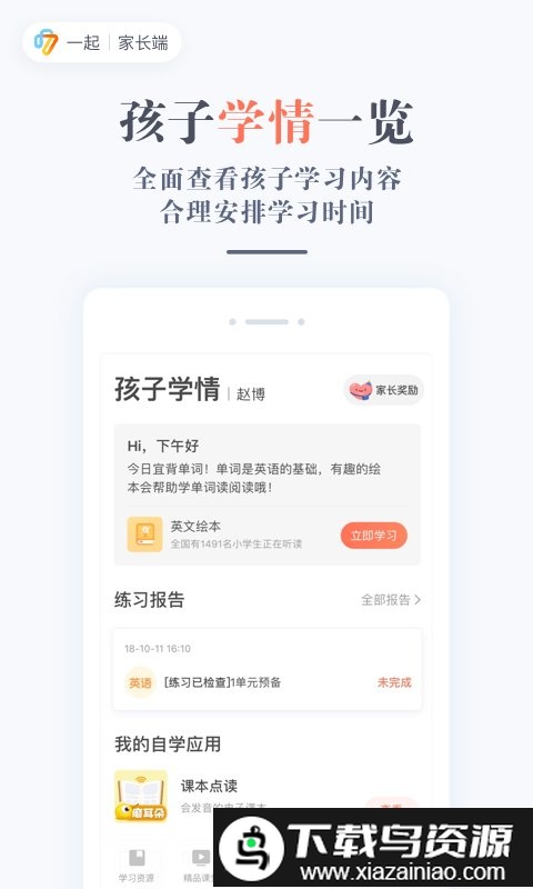 【搭建家校沟通桥梁】实时接收老师发送的练习通知、学习报告等信息;