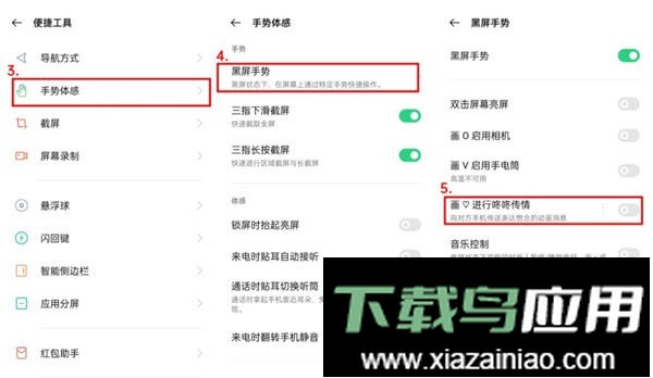 2. 选择手势体感中的黑屏手势菜单,将画心进行咚咚传情对应的开关按钮启用。