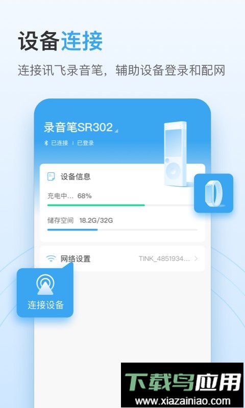 通过蓝牙连接讯飞智能录音笔,辅助完成账号登录与网络连接,步骤简便;