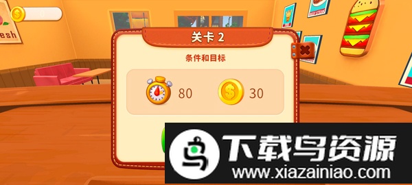 5、完成后将菜品交给顾客即可获得金币,规定时间内累积足够金币即可成功过关;