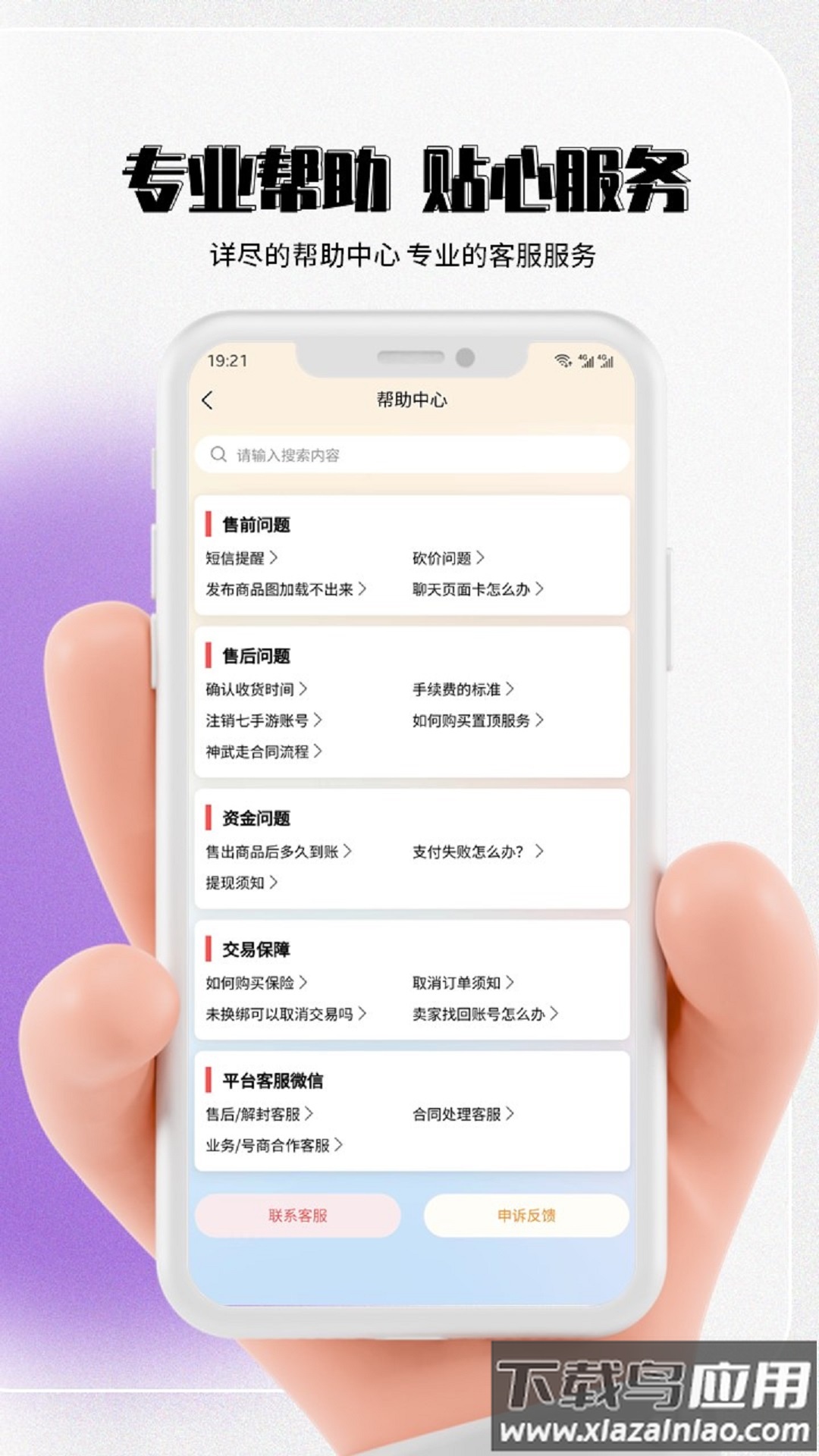 七手游app下载是一个专注于游戏账号交易的移动服务平台,这里汇集了大量优质账号与活跃玩家,让您能够轻松购买心仪的账号,也能快速出售闲置角色,全程交易安全可靠,欢迎下载体验。