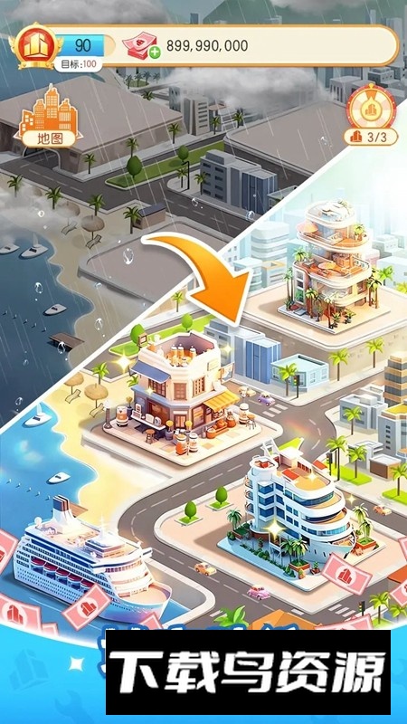 3.地标建造身价攀升:游戏开放上千张可建造地图,解锁独特地标能快速提升身价等级,助你跻身富豪行列;还可通过商业捣乱机制破坏对手地标并赚取资金,体验争夺首富之位的快感。
