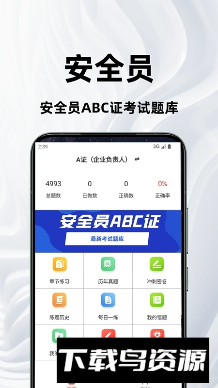 安全员百分题库APP手机版专为安全管理人员打造,是一款集学习与测评于一体的实用工具。它通过模拟考试、章节专项练习及错题强化等功能,帮助用户系统掌握安全法规、标准流程与应急技能,有效提升岗位胜任力;有需要的用户不妨在本站下载体验。