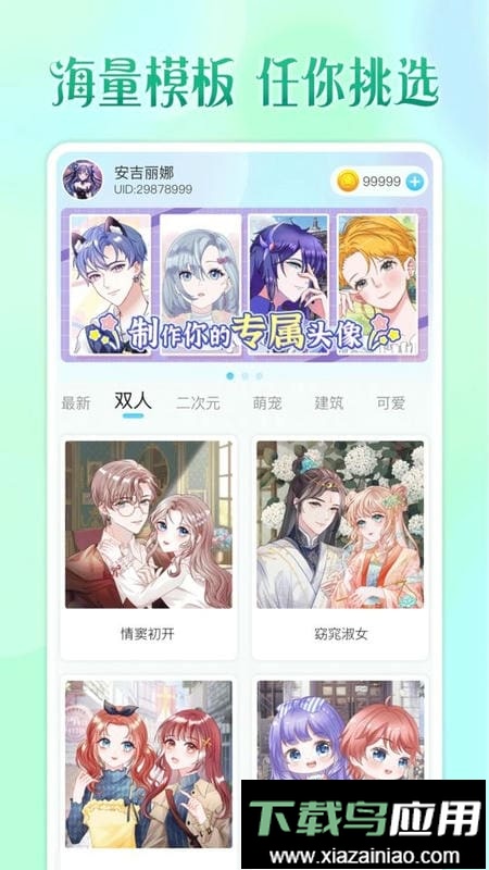 拥有海量头像模板,覆盖情侣、古风、二次元、萌宠等众多主题,满足不同喜好。