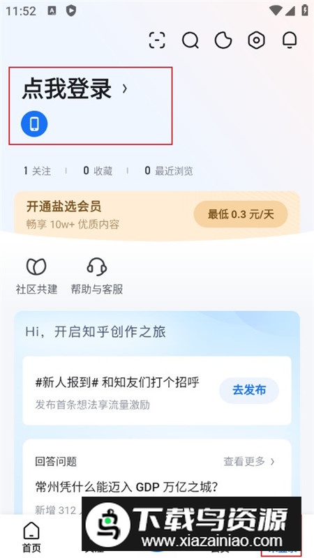 2.在手机上安装应用,打开后进入主界面,点击右下角头像,再点击上方“点我登录”按钮;
