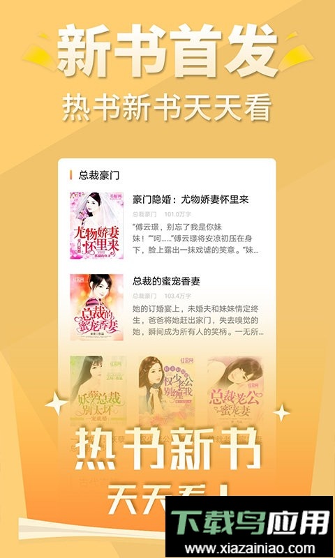 无需任何花费即可畅读海量热门小说!内容全面覆盖言情、武侠、穿越、玄幻、军事、总裁、修仙、网游、宫斗、历史、惊悚、悬疑、推理、奇幻、都市等多种题材。