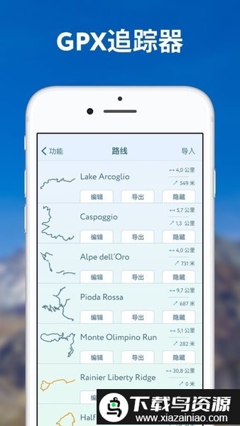 3、远足路径规划:应用汇集了全球无数的徒步路径与步道,能帮助你规划远足路线、评估步行距离、获取高程剖面信息并估算所需时间;为了便于行程规划,我们还在3D地图中标注了山间小屋、停车场、缆车、观景位置及城堡等你可能感兴趣的地点。