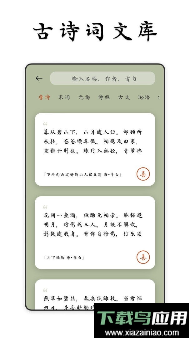 1. 每日推送一首精选诗词,涵盖唐诗、宋词、元曲等各类经典,每篇均附有详尽赏析、作者背景与诗文注解。
