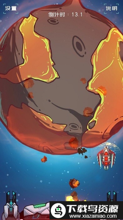 星历39m年,超新星η的剧烈爆发引发了连锁灾难,密集的陨石雨从外太空向地球袭来。作为护卫舰队的关键一员,你需要通过手指触控灵活操纵战机,在母舰周围进行防御。运用护盾与特殊技能,滑动撞击并粉碎下落的陨石碎片,坚守到母舰充能完毕的瞬间,发射终极射线摧毁上方的陨石核心。