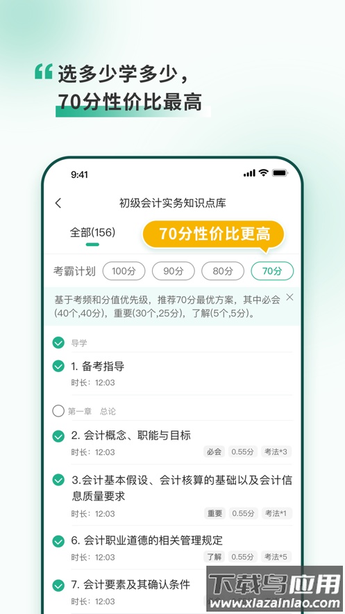 每个知识点都标注了考查频率、分值比重及出题形式,用户可快速选择以70分、80分或90分为目标的学习计划。数据显示,往往只需掌握约35%的核心知识点,就能覆盖70%的考分。