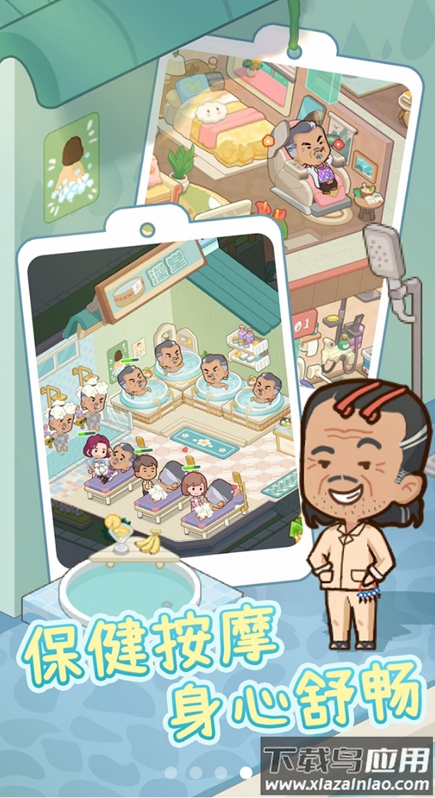 1、老人们热衷泡澡,因此游戏里设置了麻将馆、甜品店、温泉浴池等各式场所。