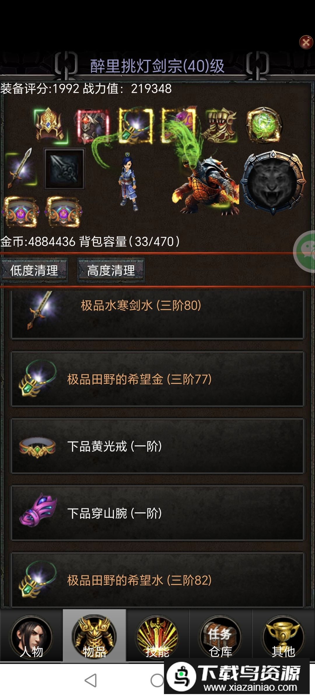 中级宝藏掉落的项链田野的希望可减少体力消耗,配合三阶水寒剑能实现额外攻击次数;四阶玄铁剑属性更高,其分解所得的进阶石可用于提升水寒剑。