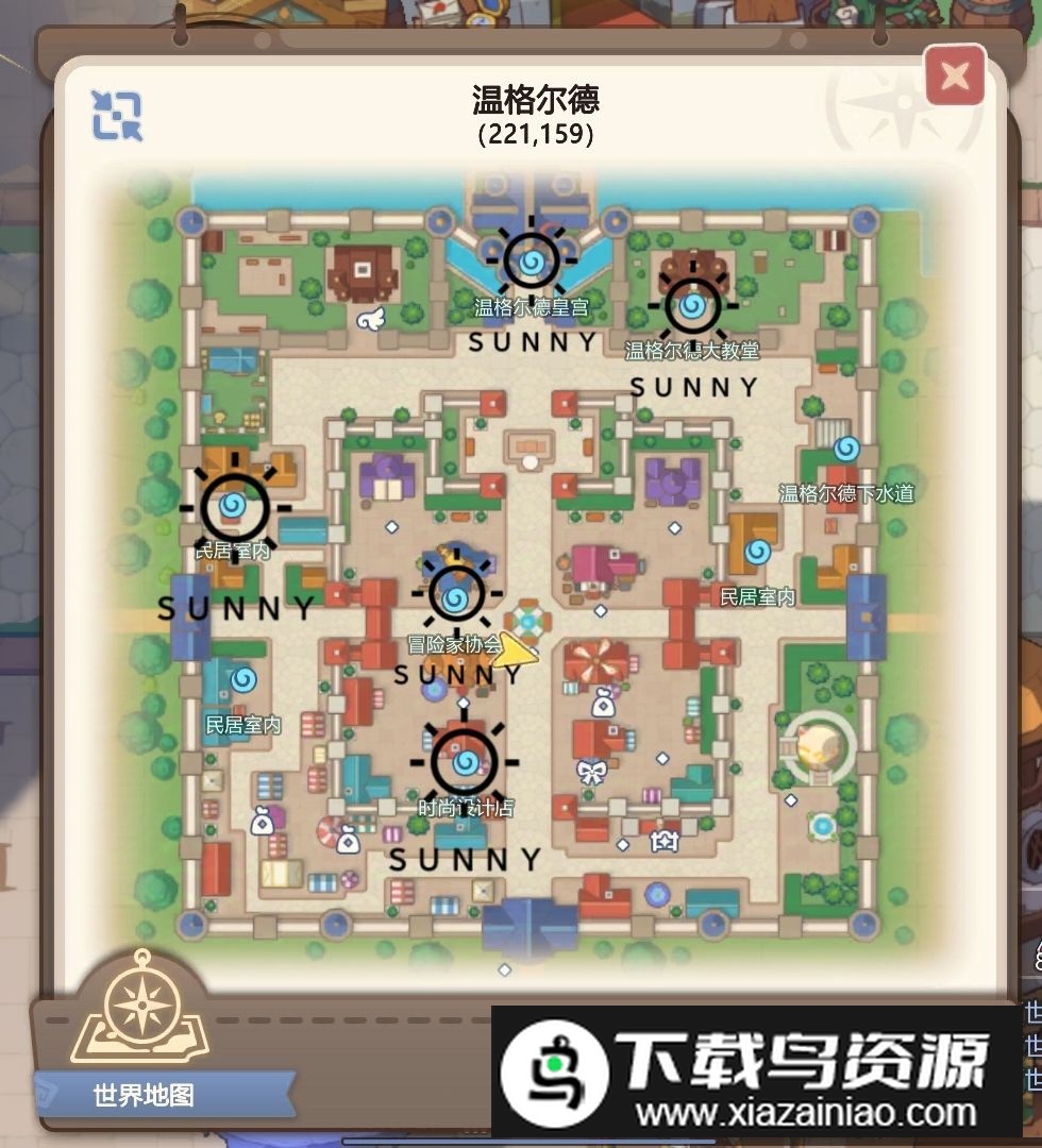 部分npc位于黑色太阳标记的建筑内;冒险家协会二楼还藏有一名npc。