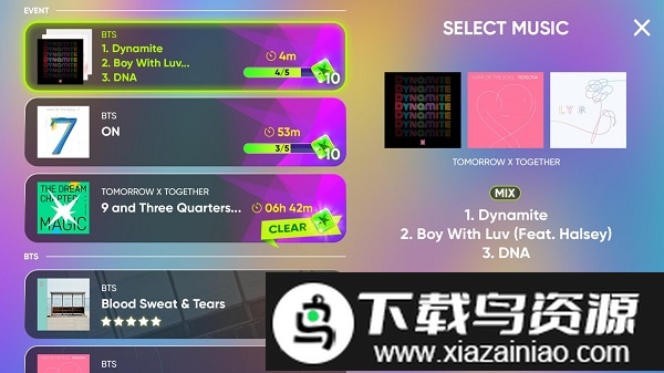 这款游戏采用经典的下落式音符玩法,玩家可以畅玩到来自BTS防弹少年团、TXT等HYBE旗下艺人团体的众多热门曲目。