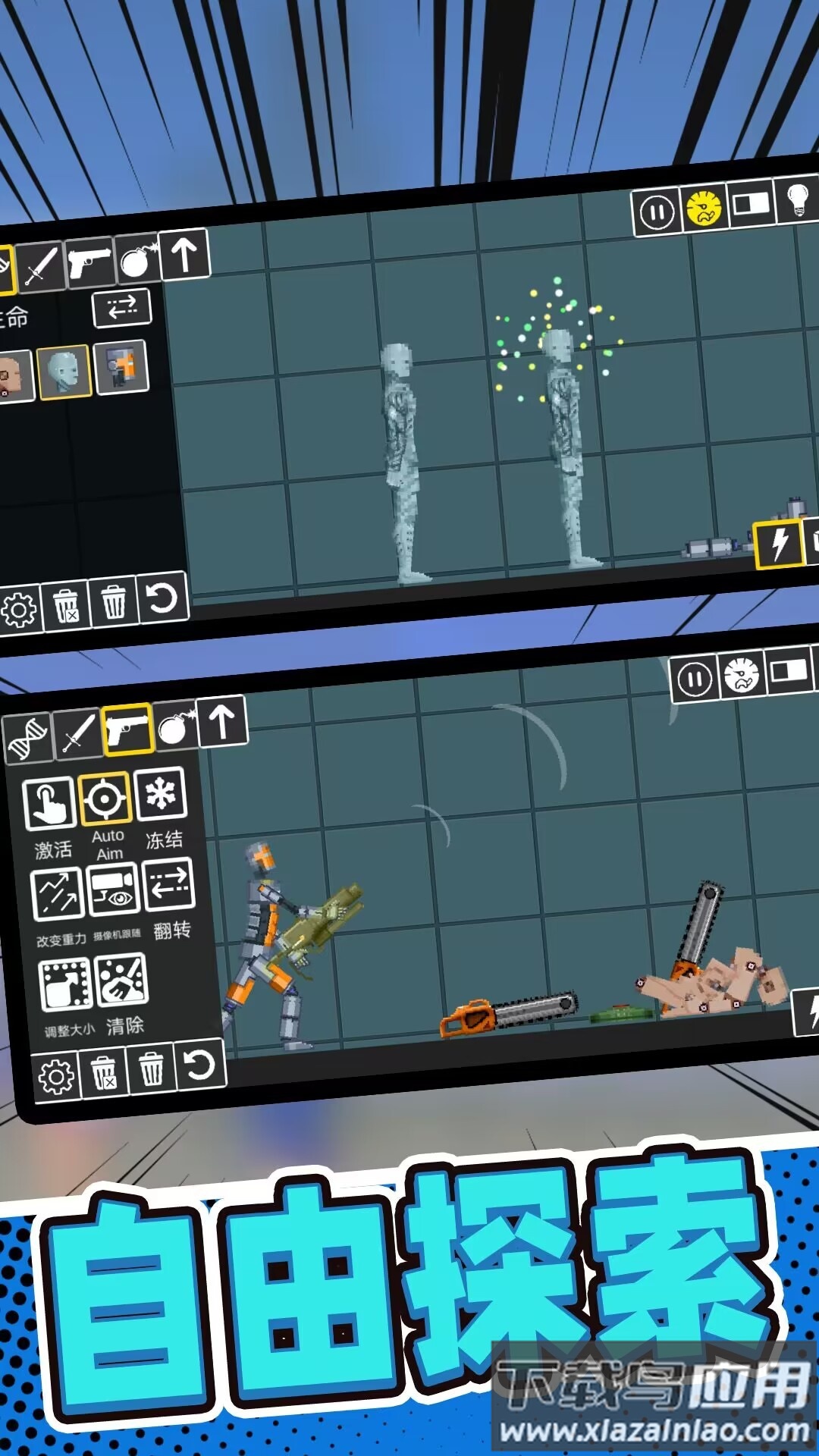 在这款像素沙盒游戏中,你可以体验到高度自由的创造与冒险。从远程枪械到贴身格斗的冷兵器,从引爆全场的炸药到恢复生命的药水,丰富的装备任你搭配,以适应多变的战斗情境。通过完成各类关卡任务,你能积累金币与奖励,持续解锁更多内容。欢迎下载尝试,开启你的物理沙盒之旅。