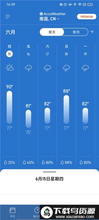 6. 切换到“每天”板块,能查看每日天气概要,并按月预览未来的长期趋势;