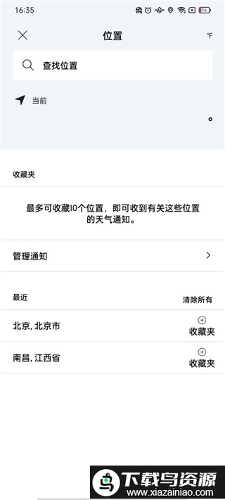 1. 安装并打开AccuWeather中文版,授予必要权限后选择你所在的地区,此处以南昌为例;