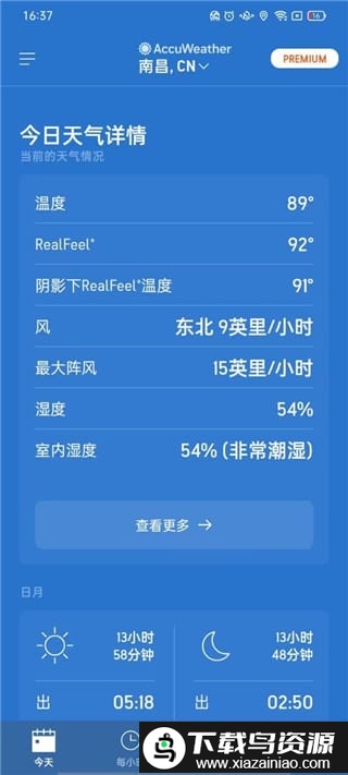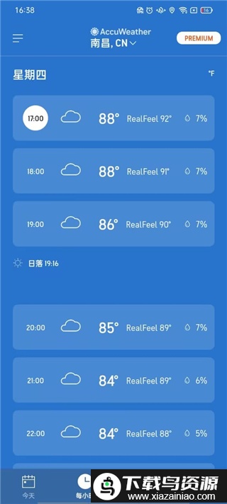 5. 点击“每小时”标签,可以查阅最近几天每小时的具体天气变化;