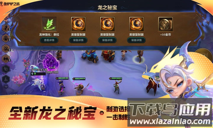 金铲铲之战测试服官方版本是腾讯公司开发的一款手机游戏,其核心玩法源自云顶之弈。这款游戏将大量英雄与装备系统移植到移动平台,并针对手机操作进行了专门优化。玩家能够便捷地邀请微信或QQ好友组建队伍,共同参与对局并获得经验与金币。游戏内提供了丰富的职业与种族选择,允许自由组合搭配。通过将英雄升星可以有效增强队伍实力,充满策略深度的对战过程带来了充足乐趣,等待玩家下载尝试。