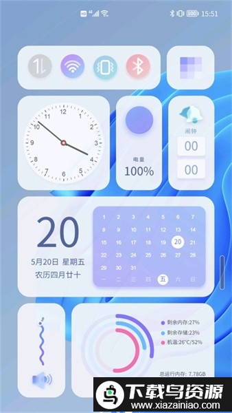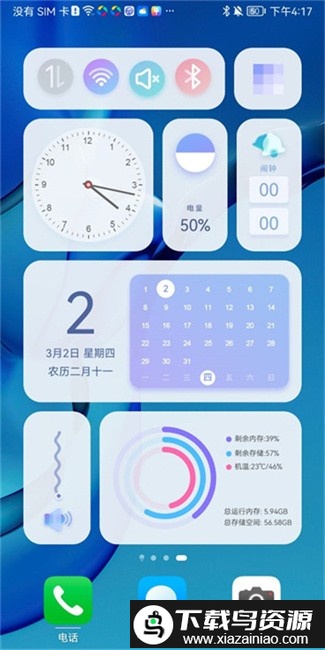 3、手机存储信息小组件:呈现手机存储详情与实时温度等信息。