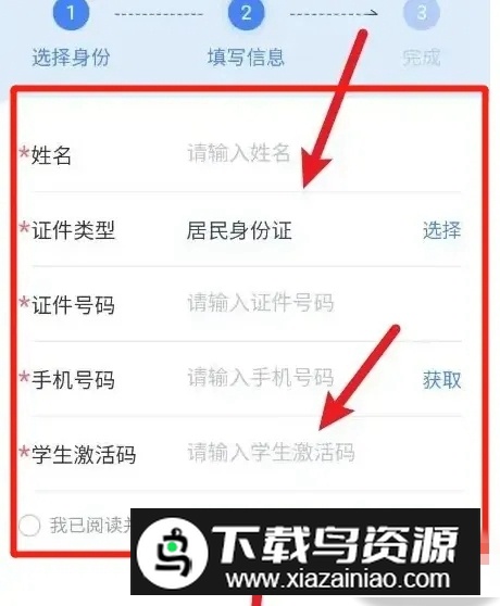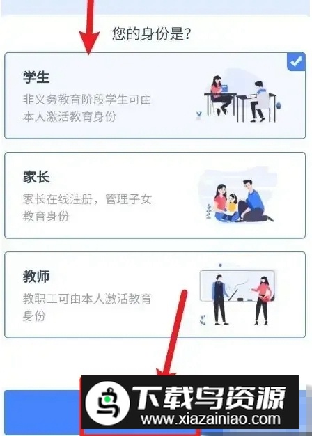 2.进入页面后,选择需要激活的身份类型,并点击下一步继续。