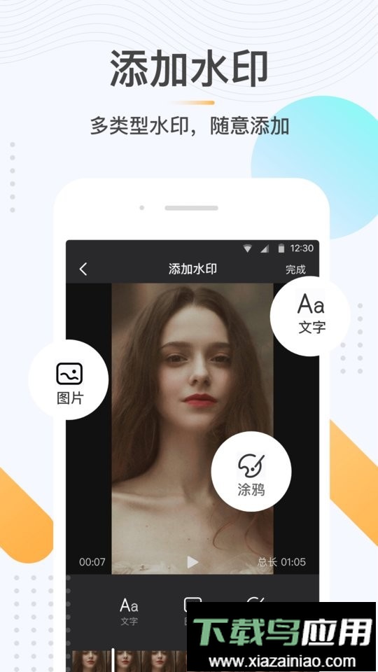 3、添加水印:在视频任意位置加入自定义水印标识;