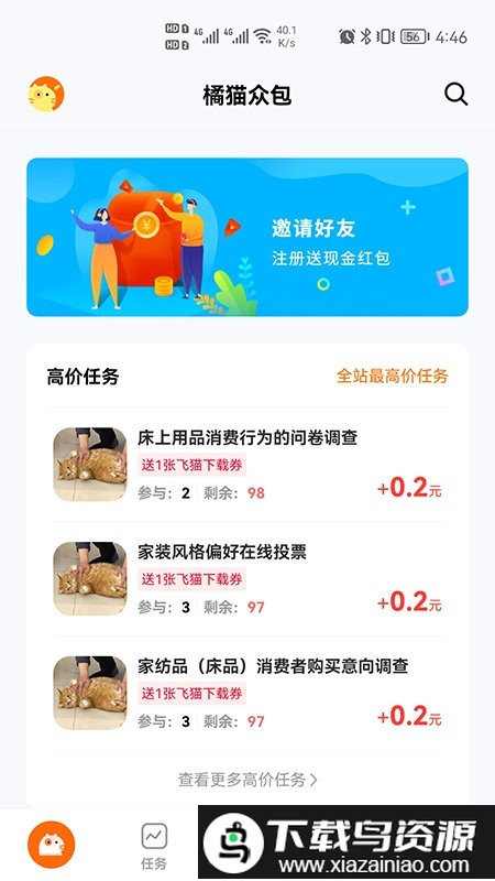 这是一个通过手机就能轻松发现各类兼职任务的平台,用户可自由接单赚取收入。橘猫众包上的任务大多没有过高门槛,你可以根据自身情况选择合适的内容,在互帮互助中轻松获得报酬。平台任务通常较为简单,容易完成,你可以挑选那些看起来最顺手的工作,多劳多得,收益方式十分透明。你也可以将应用分享给身边的朋友,一起参与。