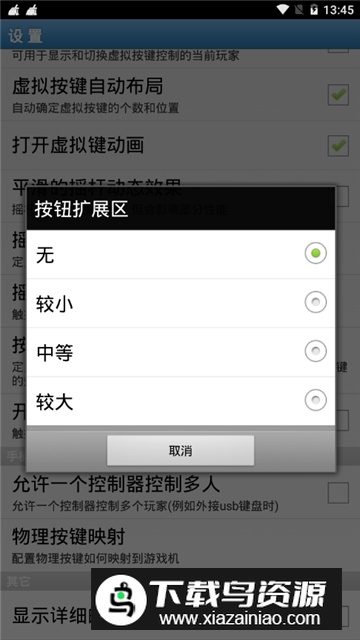 摇杆扩展区:触摸摇杆周围区域仍可进行操控。