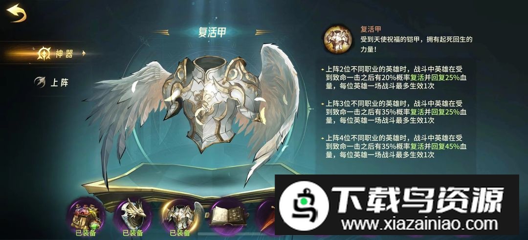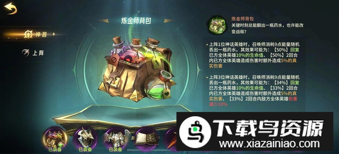 神器前期推荐:复活甲、传奇鸟盾、炼金师背包。