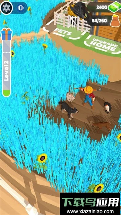 游戏玩法轻松解压,卡通化的界面设计清晰明了,操作简单直观,你只需控制工人即可开始割草;