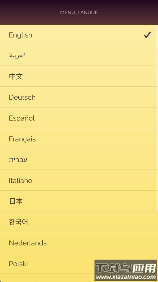 1、下载并打开akintor灯神应用,首先在语言选择中挑中文。