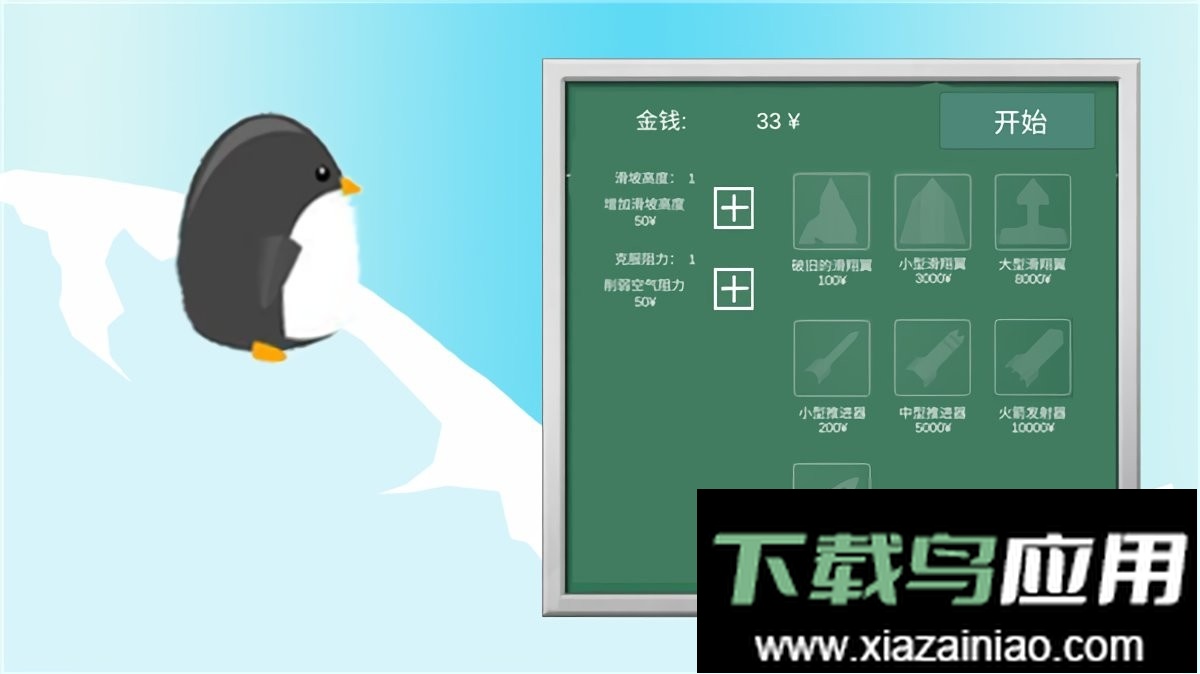你的目标十分明确:飞得更高更远。飞行过程会奖励金币,用于购买各种冰雪主题的升级物品;同时,完成每个关卡还能解锁成就,获取额外奖励。
