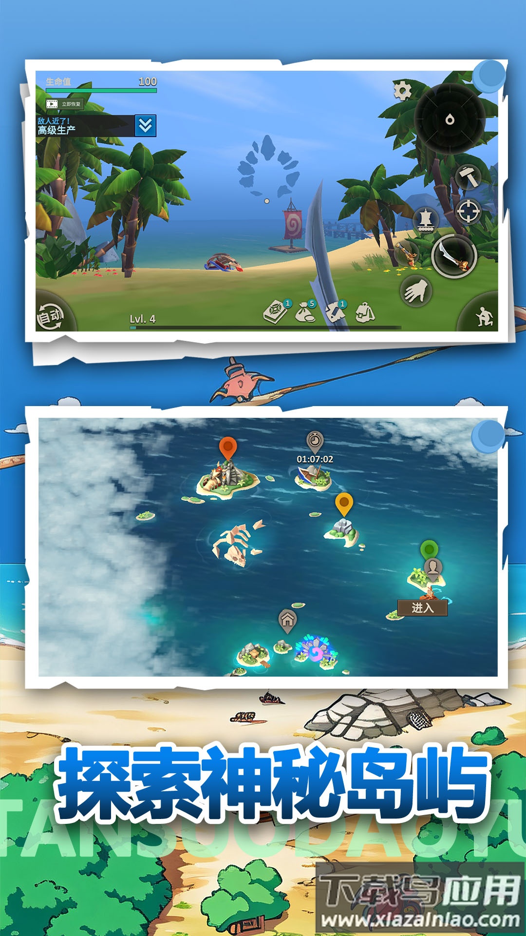 亲手制作武器,对抗岛上的原始居民与野生动物,逐步将这片海域打造成属于你的坚固堡垒,体验紧张刺激的生存竞技乐趣。