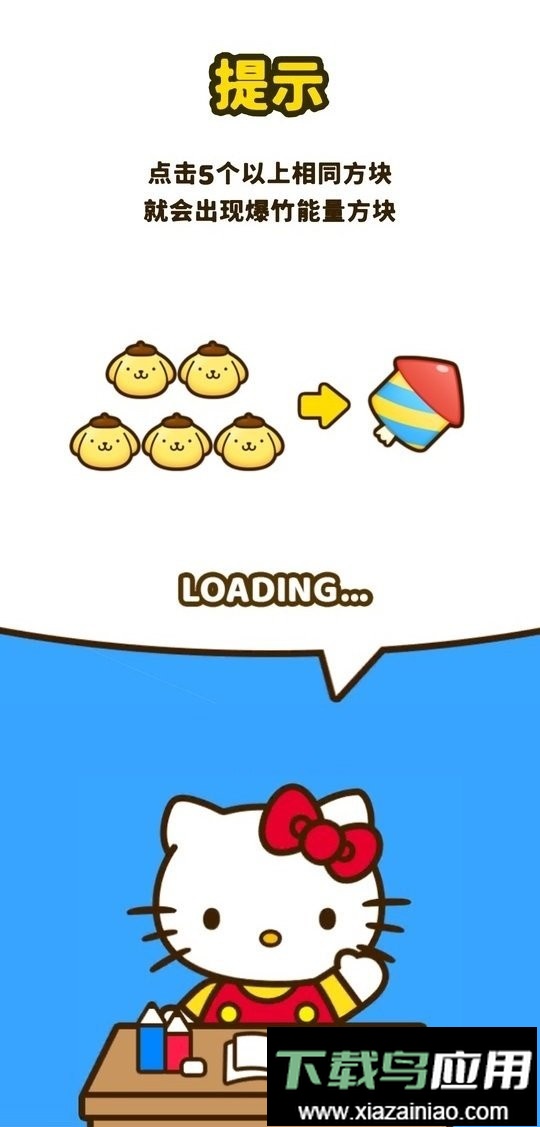 与凯蒂猫的好友们共同参与欢乐的圣诞派对;全球知名角色凯蒂猫和伙伴们现身消除手游之中;携手可爱的三丽鸥人物畅玩心动游戏;连接两个以上好友方块,可爱程度直线上升;将各类好友方块巧妙组合,转化为特殊方块,感受绚烂多彩的视觉世界;慵懒的蛋黄哥也来到现场,欢迎进入更富温情的凯蒂猫好友天地;享受消除障碍方块的乐趣,探索凯蒂猫与好友们的奇幻世界吧!