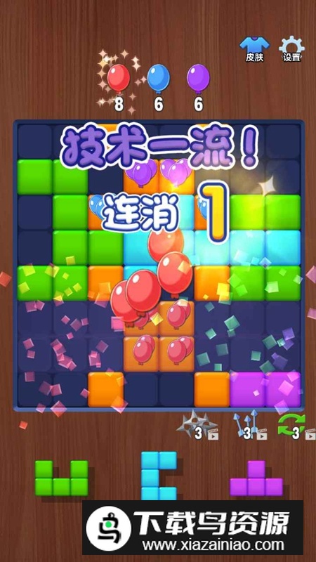 3.绚丽视觉效果:游戏采用高清画质与鲜艳的色彩搭配,方块造型精致细腻;消除时产生的光影特效十分炫酷,为玩家带来一场精彩的视觉盛宴。