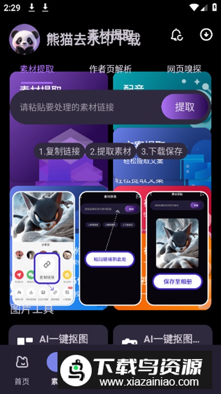 熊猫去水印下载app最新版本是一款面向自媒体创作者的综合性素材处理工具。它集合了视频与图片去水印、素材获取、文案创作以及智能剪辑等多种功能,能够支持超过三千个平台的无水印内容下载,帮助用户高效完成内容创作与编辑。