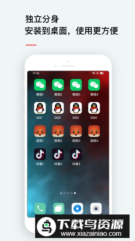 想要在一台设备上同时登录多个社交账号吗?这款应用多开工具能帮你轻松实现,它可以快速创建多个独立的应用分身,让你自由管理不同账号的朋友圈,便捷切换各种社交身份,同时有效保护个人隐私信息,整个过程简单流畅,喜欢的不妨在本站下载。