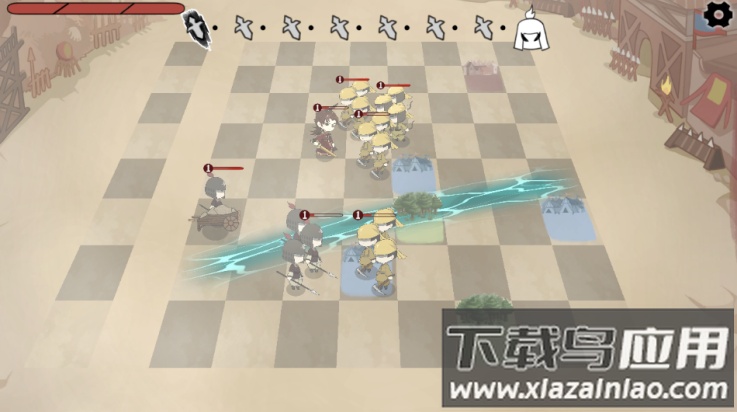 3、将购买的士兵或武将拖放至棋盘上,点击开始战斗,棋子便会自动与敌人交战。清除所有敌方单位后,本关即告通过。