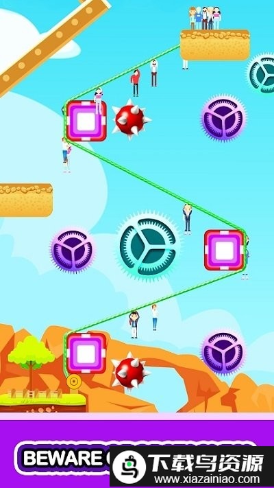 1. 小心路上的陷阱与障碍,游戏操作直观,通过拖动绳索搭建安全通道;