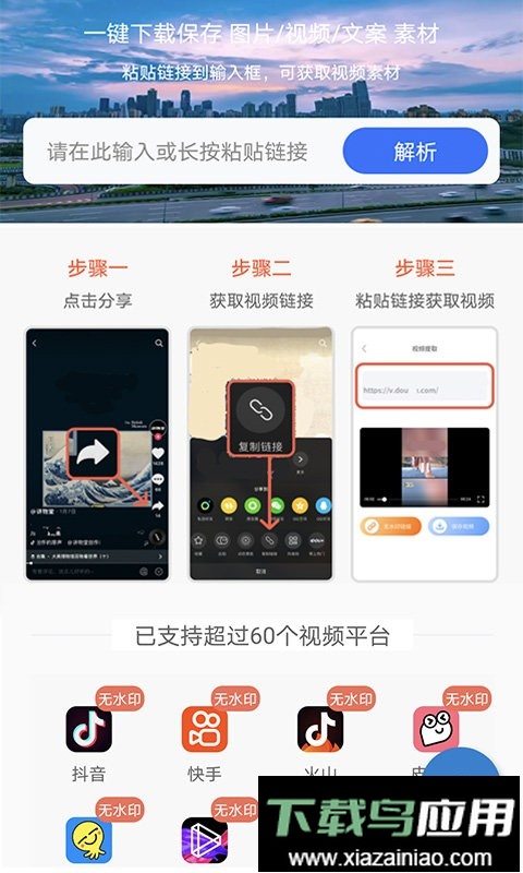 【去水印】复制视频链接即可一键提取多个平台的无水印视频,是一款简单高效的视频去水印工具;