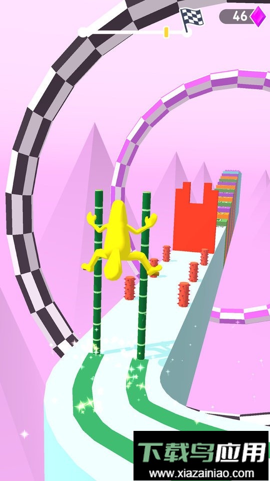 角色移动时略带颠簸感,玩家需跨越不断出现的障碍来磨练技术;随着熟练度提升,你的行进速度也会逐步加快。