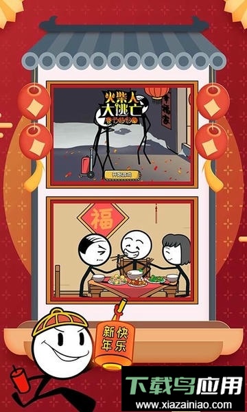 《火柴人大逃亡春节篇》是该系列为新春打造的特别版本,游戏内洋溢着浓厚的节日氛围,设计了众多与春节主题相关的趣味关卡,期待各位玩家下载体验挑战。
