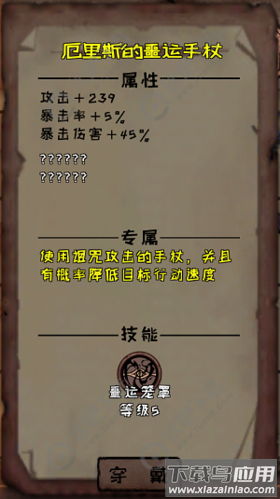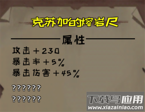 被称为爆燃者之物的熔岩尺,据说能够丈量一切可燃物;击中敌人后有30%概率触发额外火焰伤害;当暴击率提升至50%时,则必定触发强力的火焰伤害;这把封印武器口碑良好,但其性能发挥存在一定门槛;只有在暴击率达到50%后,才能展现出堪比点火棒的真实威力。