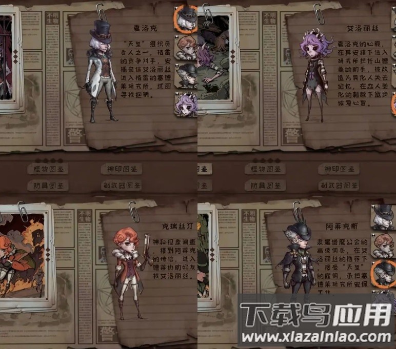 游戏初始提供四名角色:夏洛克、艾洛丽丝(18妹)、克瑞斯汀(12姐)与阿莱克斯(锤哥);除夏洛克外,其余三名角色需内购解锁,价格分别为18、12与6;即使不购买角色,玩家也能正常进行游戏并获取所有主武器(副武器除外)。