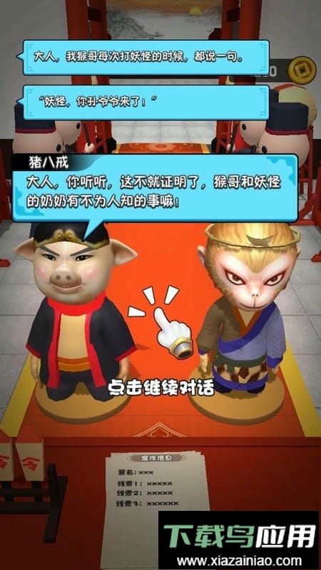 这是一款3D休闲闯关游戏,玩家需运用智慧判断嫌疑人是否真凶。正确裁决可提升声望并晋升官阶,失误则会导致声望降低甚至贬职。当声望积累到一定水平,即可实现官级飞跃。必须仔细观察,揪出案件背后的真犯,罪犯可能单独作案也可能多人合谋,全凭玩家的精准判断。最终成功者可赢得宝箱奖励。