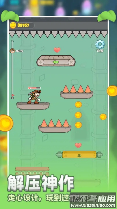 目标就是引导角色一步步走下台阶,同时必须灵敏地躲开尖刺等危险陷阱。