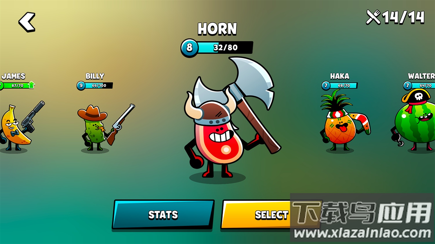 4. 玩家可以自由选择角色,西瓜、菠萝、汉堡、香蕉、包菜等都在列表之中。